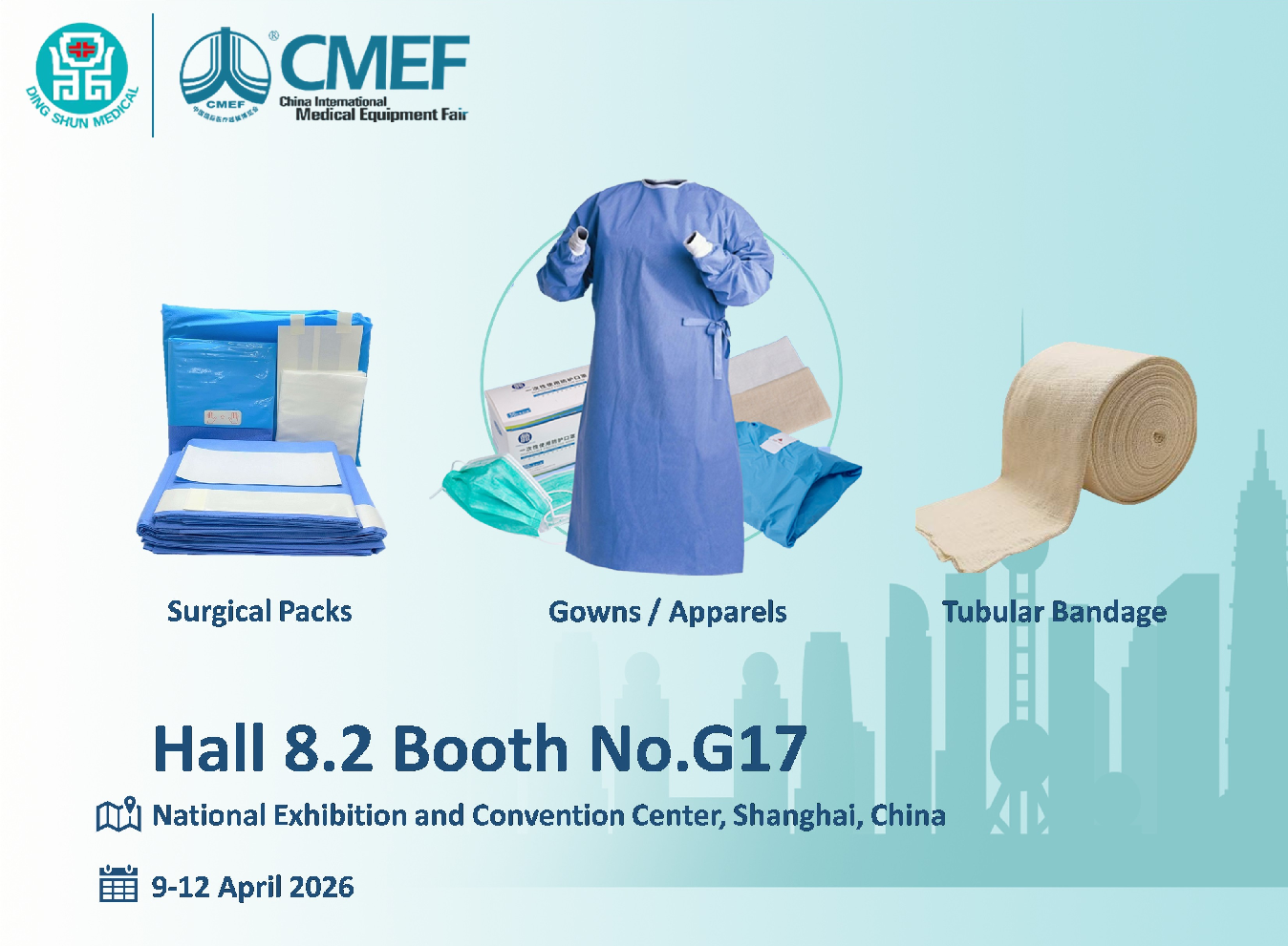 Yritys esittelee sen Kirurgiset pakkaukset , Mekot/vaatteet , ja Putkimainen side tuotelinjat Hall 8.2, osasto nro G17. Tapahtuma järjestetään Shanghain kansallisessa messu- ja kongressikeskuksessa.